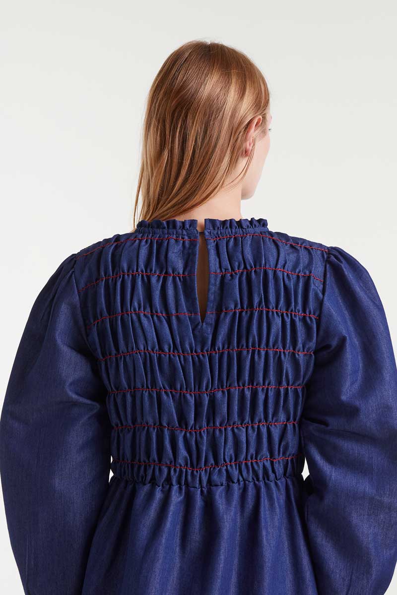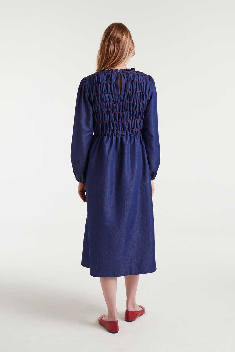 100% cotton blue chambray midi dress